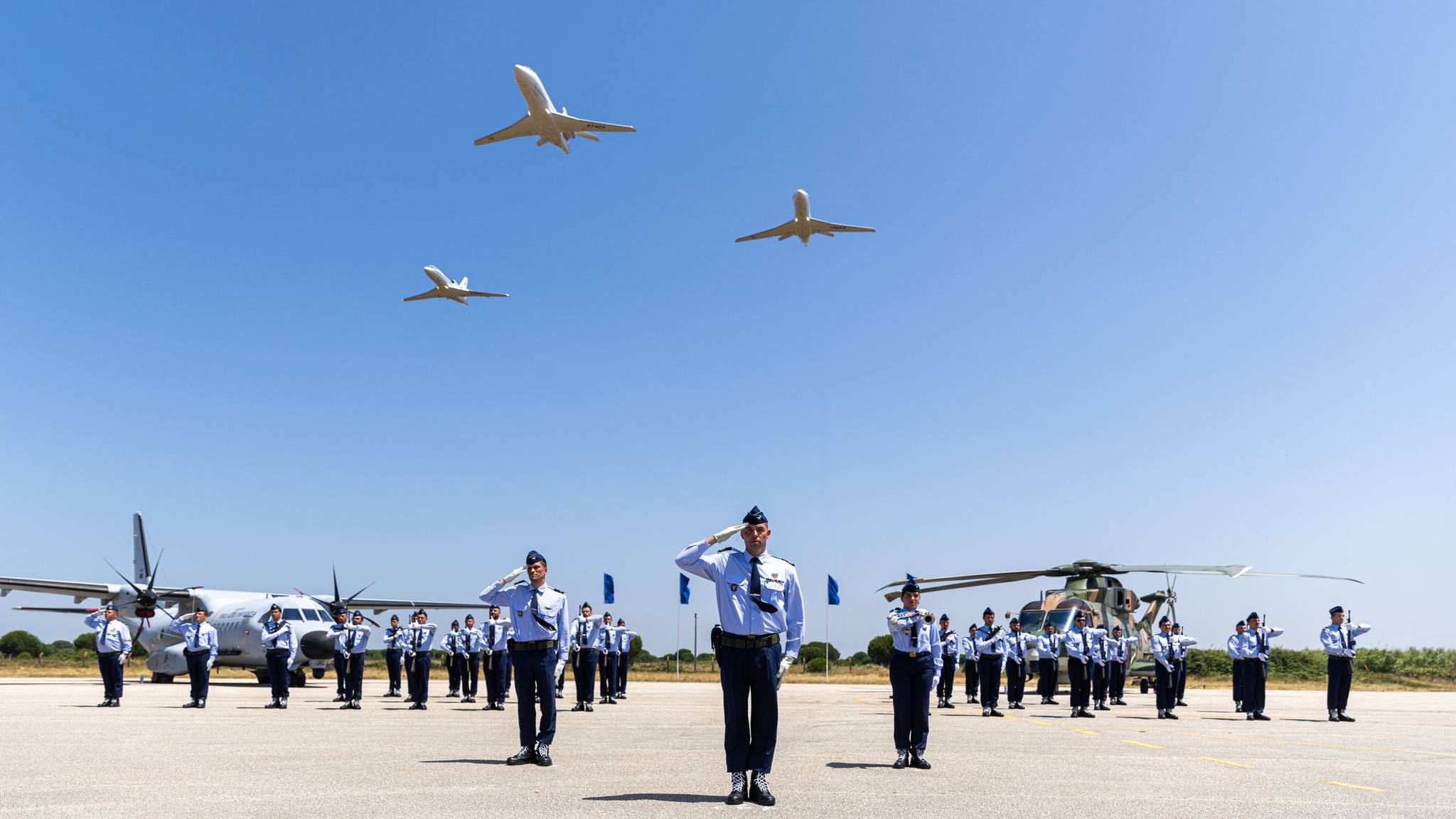 A cerimónia terminou com o desfile das forças em parada e com a passagem aérea de aeronaves sediadas na base, como o EH-101 Merlin, Falcon 50, Falcon 900 e C-295M.