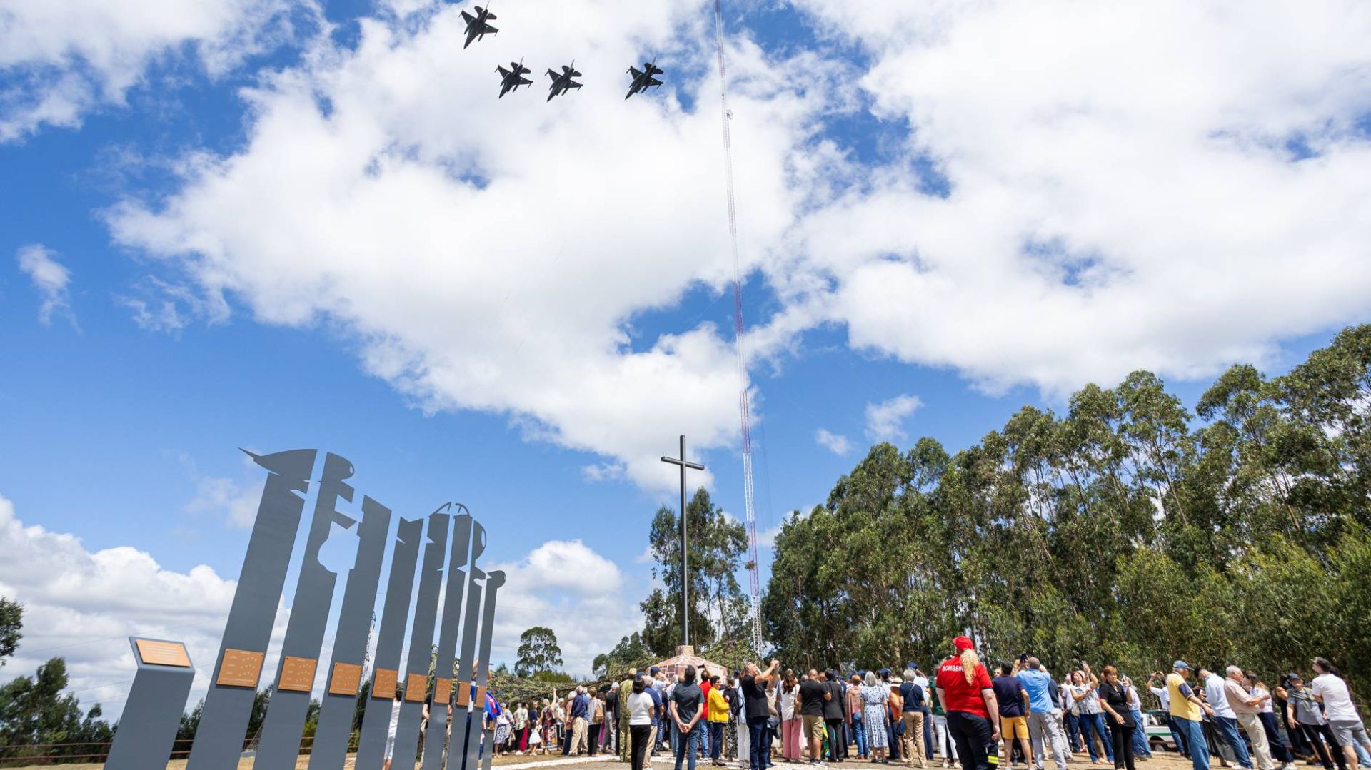 No final da cerimónia religiosa, uma esquadrilha de F-16M sobrevoou o local.